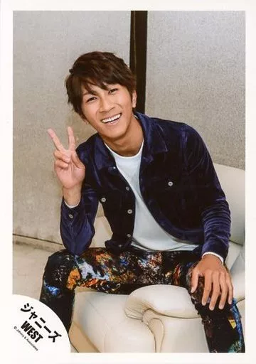 Japanese title: 生写真(ジャニーズ)/アイドル/ジャニーズWEST ジャニーズWEST/濱田崇裕/膝上・座り・衣装紫・白・右手ピース・笑顔・ソファ白・背景白/アルバム「なうぇすと」ジャケ写撮影&「one chance」PV撮影/公式生写真