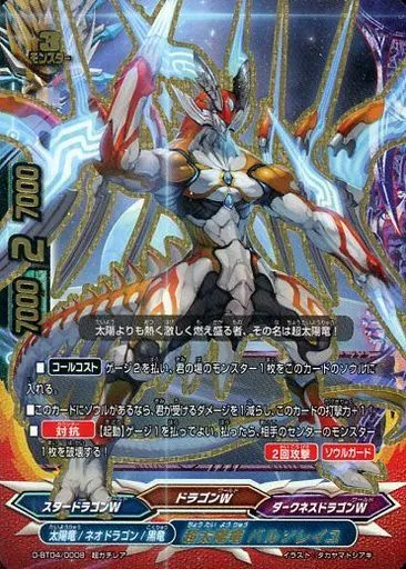 Japanese title: バディファイト/超ガチレア/必殺モンスター/ダークネスドラゴンW/[BF-D-BT04]トリプルディー ブースターパック第4弾「輝け!超太陽竜!!」 D-BT04/0008[超ガチレア]:超太陽竜 バルソレイユ