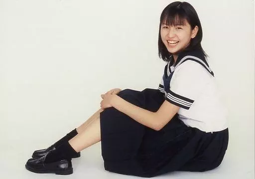 Japanese title: 生写真(女性)/女優 長澤まさみ/横型・全身・衣装制服・体左向き・座り・笑顔/公式生写真