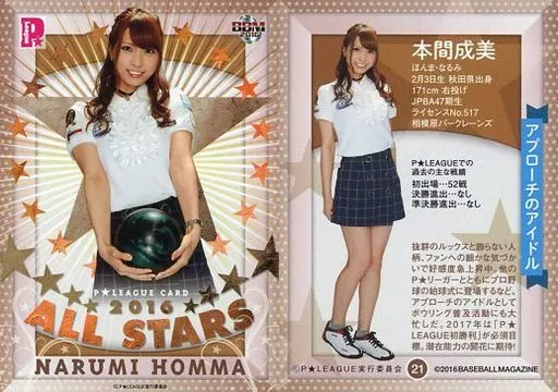 Japanese title: BBM/レギュラーカード/BBM2016 P★LEAGUE ALL STARS 21[レギュラーカード]:本間成美