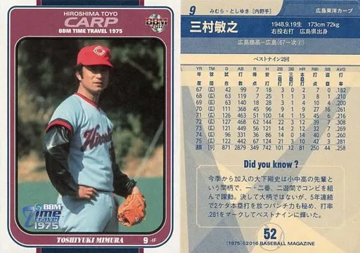 BBM / Regular Card / Hiroshima Toyo Carp / BBM Time Travel 1975 52 [Regular Card] : Toshiyuki Mimura