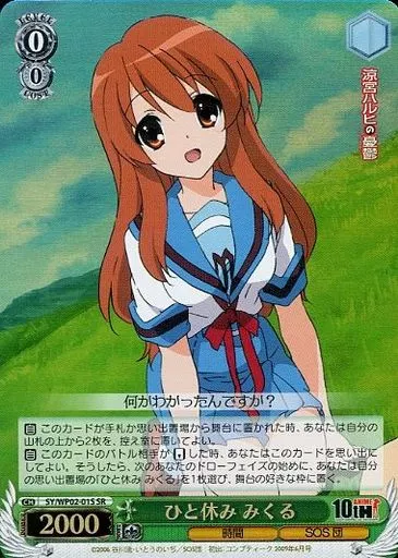 Japanese title: ヴァイスシュヴァルツ/SR/キャラ/パワーアップセット 涼宮ハルヒの憂鬱 SY/WP02-01S[SR]:(ホロ)ひと休み みくる