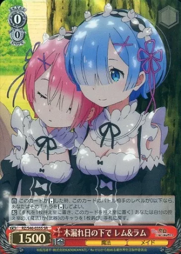 Japanese title: ヴァイスシュヴァルツ/SR/キャラ/ブースターパック Re:ゼロから始める異世界生活 RZ/S46-035S[SR]:(ホロ)木漏れ日の下で レム&ラム