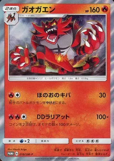 Japanese title: ポケモンカードゲーム/P/炎/サン&ムーン スペシャルセット ガオガエン 018/SM-P[P]:(キラ)ガオガエン