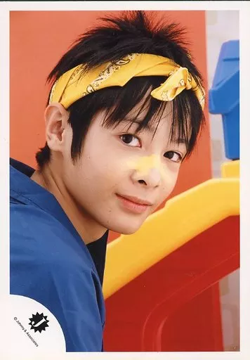 Japanese title: 生写真(ジャニーズ)/アイドル/Ya-Ya-yah Ya-Ya-yah/赤間直哉/バストアップ・衣装青・体右向き・スカーフ・背景オレンジ/公式生写真