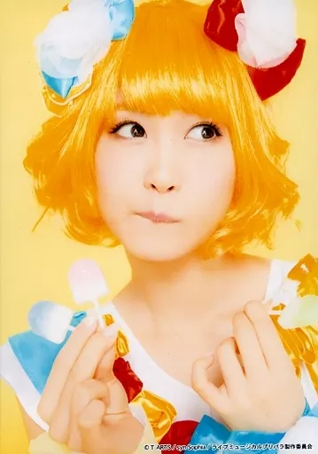 Official photo (female) / voice actor Yu Serizawa (Mirei Minami) / Bust Up / Both Hands Candy / Eye Right / Background Yellow / Character Actor Shot / Live Musical 「 PriPara 」 Minto Nani Todoru! Prism ☆ Voice 2017 Random Bromide