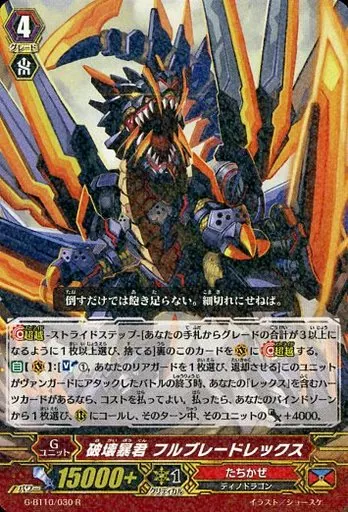 Japanese title: ヴァンガード/R/Gユニット/たちかぜ/ヴァンガードG ブースターパック 第10弾「剣牙激闘」 G-BT10/030[R]:破壊暴君 フルブレードレックス