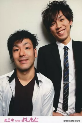 Official photo (Male) / Comedian Elite Yankee / Nishijima Eigo / Tachibana Minoru / Upper Body / Costume White / Black / Necktie / Nishijima Neck Tilt / Smile Background White / Postcard Size / LUMINE the YOSHIMOTO