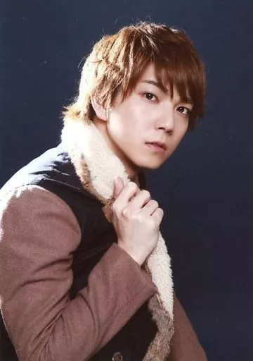 Official photo (male) / actor Yuya Asato / Bust Up / Costume Brown. Black / Right Hand Collar / Right Side / Background Black / "Yuya Asato (TOKYO Shooting Star Group) and Masanari Wada's Big Bonenkai Talk Event" Goods Sales Official photo