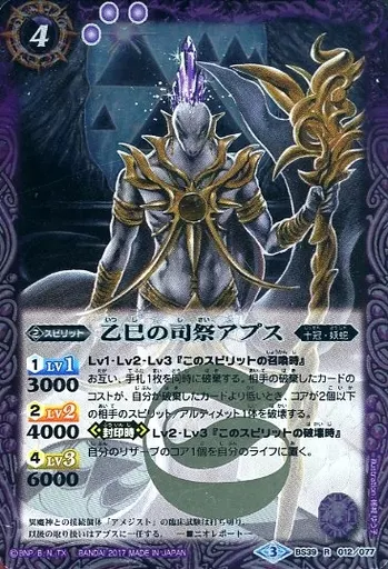 Japanese title: バトルスピリッツ/R/スピリット/十二神皇編 第5章 BS39-012[R]:乙巳の司祭アプス