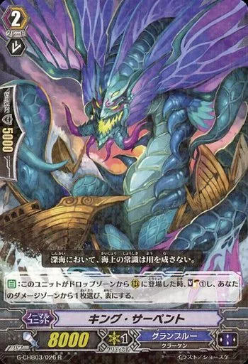 Japanese title: ヴァンガード/R/ノーマルユニット/グランブルー/ヴァンガードG キャラクターブースター 第3弾「月夜のラミーラビリンス」 G-CHB03/026[R]:キング・サーペント