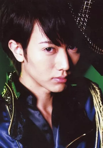 Japanese title: 生写真(男性)/俳優 太田基裕(Bloom)/バストアップ・衣装青・右向き・帽子・背景緑/舞台「CLUB SLAZY」生写真Aセット