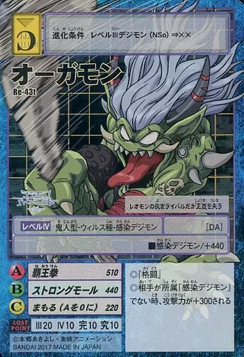 Japanese title: 旧デジモンカードゲーム/デジモンカード/デジタルモンスターカードゲーム デジモンアドベンチャー tri. ファーストメモリアルセット プレミアムバンダイ限定 Re-43t:オーガモン