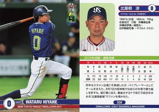 Japanese title: BBM/レギュラーカード/BBM2017 東京ヤクルトスワローズ S58[レギュラーカード]:比屋根渉