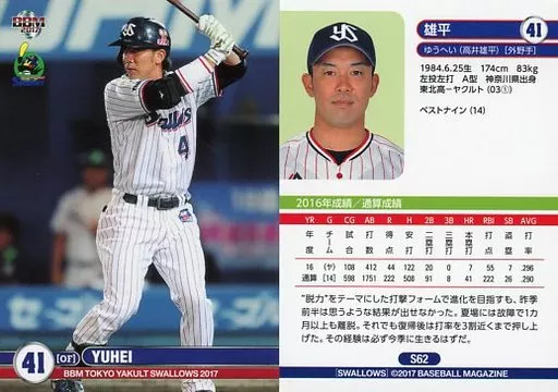 Japanese title: BBM/レギュラーカード/BBM2017 東京ヤクルトスワローズ S62[レギュラーカード]:雄平