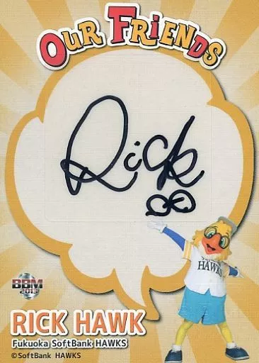 BBM / Special Insert Card / Signature Card / Fukuoka Soft Bank Hawks / BBM2013 Mascot Card OUR FRIENDS Special Insert Card : Rick Hawk (with handwritten signature) (/ 240)