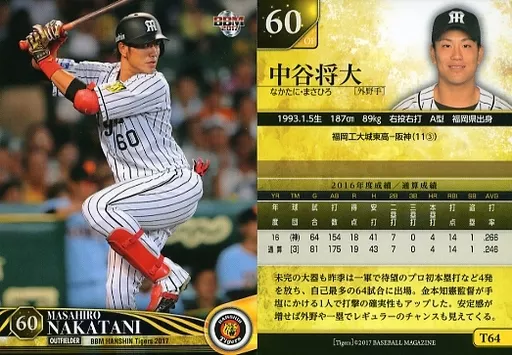 Japanese title: BBM/レギュラーカード/BBM2017 阪神タイガース T64[レギュラーカード]:中谷将大