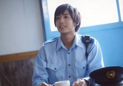 Japanese title: 生写真(男性)/俳優 中尾拳也/横型・上半身・衣装水色・目線左/舞台「カフェ・パラダイス」 個人ブロマイド