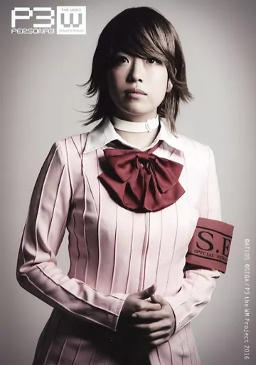Japanese title: 生写真(女性)/女優 富田麻帆(岳羽ゆかり)/上半身・両手腹・背景グレー・キャラクターショット/舞台「ペルソナ3 the Weird Masquerade ~藍の誓約/碧空の彼方へ~」ブロマイド