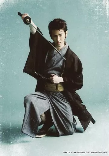 Japanese title: 生写真(男性)/俳優 榛葉恵太(試衛館塾生)/全身・しゃがみ・右手刀・キャラクターショット/舞台「ちるらん 新撰組鎮魂歌」生写真