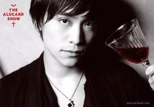 Japanese title: 生写真(男性)/俳優 平間壮一(オルロック)/横型・バストアップ・左手グラス傾け・モノクロ/「THE ALUCARD SHOW 再演」生写真
