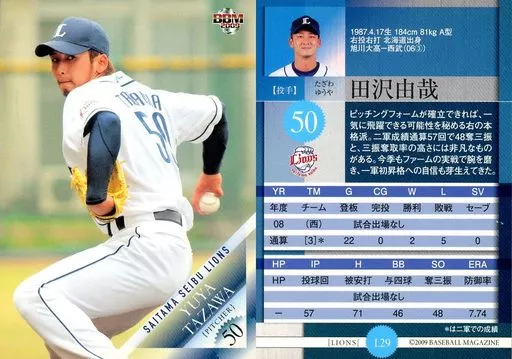 Japanese title: BBM/レギュラーカード/埼玉西武ライオンズ/BBM2009 西武ライオンズ L29[レギュラーカード]:田沢由哉