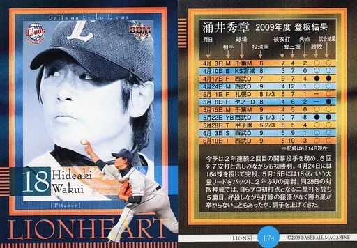 BBM / Regular Card / Saitama Seibu Lions / BBM2009 Seibu Lions L74 [Regular Card] : Hideaki Wakui