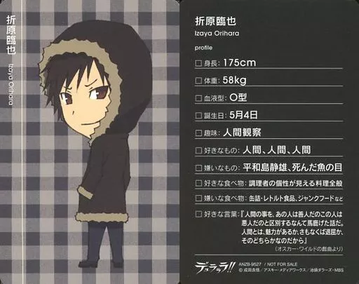 DVD "DURARARA!!" Vol. 04 Full Production Limited Edition Privilege Character C. Profile Card