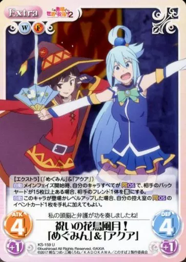 Japanese title: カオス/U/Extra/水火/ブースターパック この素晴らしい世界に祝福を!2 KS-159[U]:祝いの花鳥風月!「めぐみん」&「アクア」