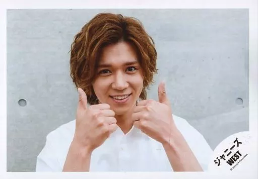 Japanese title: 生写真(ジャニーズ)/アイドル/ジャニーズWEST ジャニーズWEST/小瀧望/横型・バストアップ・衣装白・両手親指立てる・体正面/「おーさか☆愛・EYE・哀」PV&ジャケ写撮影オフショット/公式生写真