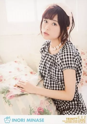 Japanese title: 生写真(女性)/声優 水瀬いのり/上半身・衣装黒・白・チェック柄・両手クッション/「KING SUPER LIVE 2017 TRINITY」ブロマイド
