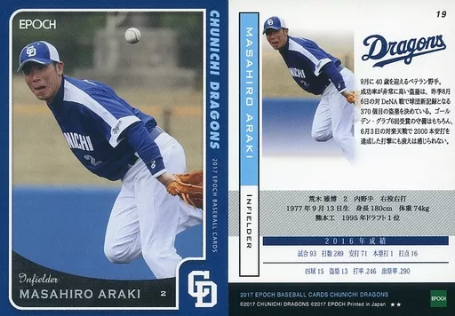 Japanese title: スポーツ/レギュラーカード/EPOCH ベースボールカード 2017 中日ドラゴンズ 19 [レギュラーカード] : 荒木雅博(★★)