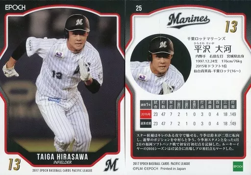 Japanese title: スポーツ/レギュラーカード/千葉ロッテマリーンズ/EPOCH ベースボールカード 2017 パシフィク・リーグ 25 [レギュラーカード] : 平沢大河