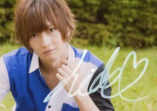 Official photo (male) / actor Yoshihide Sasaki / with handwritten signature, Horizontal, Bust up, Costume Blue, White, Left up, Outdoor, 2L size / FC limited Birthday Event Official photo