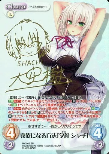 Japanese title: カオス/SP/Chara/光/ブースターパック ノラと皇女と野良猫ハート HK-009[SP]:(ホロ)家族になる方法「夕莉 シャチ」(大空 樹金箔押しサイン入り)