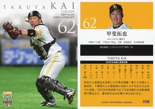 Japanese title: BBM/レギュラーカード/BBM2017 福岡ソフトバンクホークス H38[レギュラーカード]:甲斐拓也