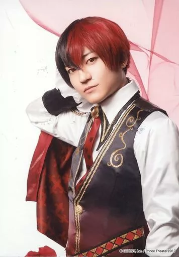Japanese title: 生写真(男性)/俳優 小林竜之(ハーツ)/上半身・右手頭・体左向き・布赤・キャラクターショット/舞台「夢王国と眠れる100人の王子様 ~Prince Theater~」ランダムブロマイド