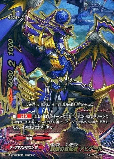 Japanese title: バディファイト/超ガチレア/モンスター/ダークネスドラゴンW/[BF-X-CP03]バッツ キャラクターパック第3弾「よっしゃ!! 100円ダークネスドラゴン」 X-CP03/0004[超ガチレア]:戦域の支配者 アビゲール