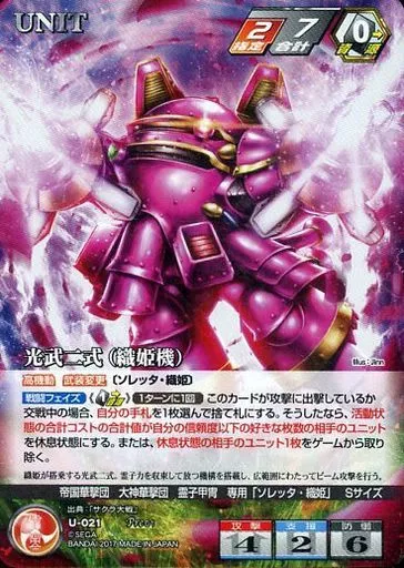 Japanese title: クルセイド/Pre/UNIT/赤/クルセイド サクラ大戦 プレミアムブーステッドパッケージ~出撃!大神華撃団~ U-021[Pre]:光武二式(織姫機)