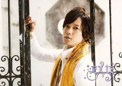 Japanese title: 生写真(男性)/俳優 辻本祐樹/横型・衣装白・金ストール・右手柵・体左向き・ロゴ「EXLE」/「聖☆明治座 るの祭典」公式ブロマイド