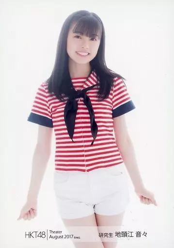 Japanese title: 生写真(AKB48・SKE48)/アイドル/HKT48 地頭江音々/膝上・衣装赤白紺・両手下・体正面/HKT48 劇場トレーディング生写真2017.August