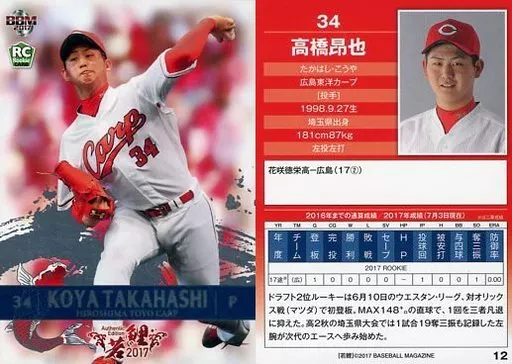 Japanese title: BBM/レギュラーカード/BBM2017 広島東洋カープ Authentic Edition 若鯉 12[レギュラーカード]:高橋昂也
