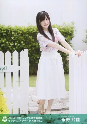 Japanese title: 生写真(AKB48・SKE48)/アイドル/AKB48 永野芹佳/全身・白紫ピンク衣装・白い柵に両手/AKB48 49thシングル 選抜総選挙~まずは戦おう!話はそれからだ~ ランクインメンバー ロケ生写真 in沖縄 vol.2