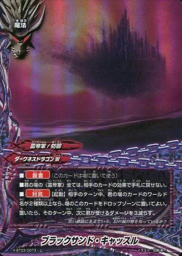 Japanese title: バディファイト/上/魔法/ダークネスドラゴンW/[BF-X-BT03]バッツ ブースターパック第3弾「逆天!雷帝軍!!」 X-BT03/0073[上]:ブラックサンド・キャッスル(ガチレア仕様)