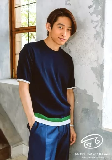 Japanese title: 生写真(ジャニーズ)/アイドル/V6 V6/三宅健/膝上・衣装黒・右手ポケット・左手下・寄りかかり/「V6 LIVE TOUR 2017 The ONES」オリジナルフォト