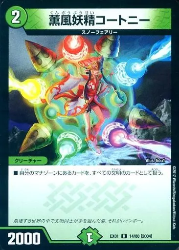 Japanese title: デュエルマスターズ/R/自然/[DMEX-01]ゴールデン・ベスト 14/80[R]:薫風妖精コートニー