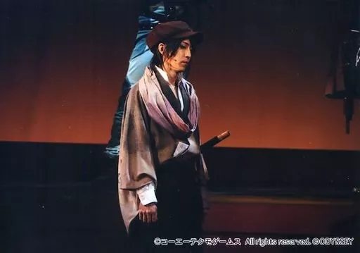 Toshihiko Tanaka (Murasame Satodani) / Live Photo, Horizontal, Above the Knee, Costume, Beige, Gray, Cap, Facing right, Both Hands Below, Character Tube Shot / D Set / Stage "Haruka: Beyond the Stream of Time 6 Gento Ronde" Movie : Bromide