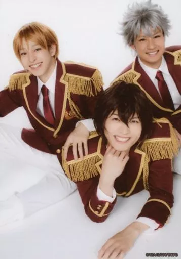 Japanese title: 生写真(男性)/俳優 小南光司(神浜コウジ)・杉江大志(速水ヒロ)・大見拓土(仁科カヅキ)/上半身・斜め・キャラクターショット・「OverTheRainbow」/舞台「KING OF PRISM -Over the Sunshine!-」物販特典ブロマイド