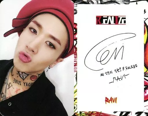 Japanese title: コレクションカード(男性)/CD「R.EAL1ZE: 1st Mini Album」封入特典トレカ VIXX/ラビ(RAVI)/顔アップ・衣装黒・ベレー帽・背景白/CD「R.EAL1ZE: 1st Mini Album」封入特典トレカ