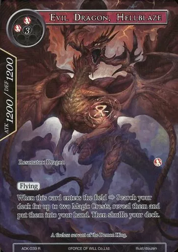 Japanese title: フォース オブ ウィル/R/リゾネイター/炎/零夜クラスタ 第2弾ブースターパック「魔王降臨」英語版 ADK-039[R]:(Foil)EVIL DRAGON HELLBLAZE/魔竜 ヘルブレイズ